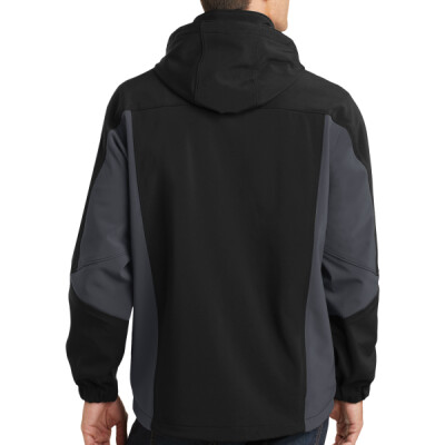 This fully waterproof, wind resistant and tech-savvy jacket delivers complete protection without the bulk. Made with a polyester woven shell bonded to polyester microfleece, this color blocked soft shell is great for cold days. Movement is a breeze with four-way stretch fabric. Plus, the interior MP3 pocket keeps the tunes coming in this sleek, urban jacket.